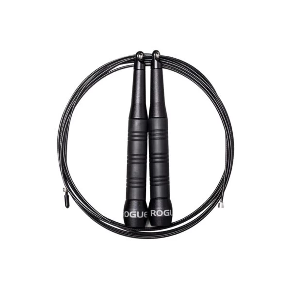 Introducing our fastest, most mechanically advanced speed rope to date. Proudly manufactured in the USA, the Rogue SR-343 Mach Speed Rope was designed to meet the standards of the world’s greatest athletes and those seeking to join them. Its unique blacked-out design is complemented by a textured bead blast finish and a line-up of premium features, including fully-machined CNC aluminum handles, lightweight urethane grips, and custom designed bearings for maximum velocity and consistent performance.The Mach Speed Rope’s 5/64″ diameter cable is 10% more dense than our standard SR-2 cable, and the overall weight (130 grams) is reduced by a custom forged aluminum head. Through rigorous testing, the SR-343 produced a spin roughly 10x better than the SR-2, without sacrificing any of the durability or functionality of that popular model.A machine’s speed and long-term performance are determined by the quality of its engineering, and this applies to speed ropes the same way it does to fighter jets or sports cars. In its category, the SR-343 Mach Speed Rope has the top-tier components, custom design features, and quality American manufacturing to match any other speed rope in the industry.The combination of a custom-designed bearing swivel system, a weight-reducing forged aluminum head, and a premium nylon-coated 5/64″ cable result in the fastest speed rope we’ve ever designed, producing a spin that’s a remarkable 10x better than our SR-2 model, with free and easy, omnidirectional movement. Note: The 120″ long cable can be cut down to accommodate the user’s height.The SR-343 is made in the USA and designed to look and feel as good as it performs. This includes fully-machined CNC aluminum handles (aircraft grade quality), lightweight urethane grips, and a unique black-out design with a textured bead blast finish (everywhere except the urethane grips). We’ve also etched the Rogue logo into the bottom of each 0.75″ diameter handle.