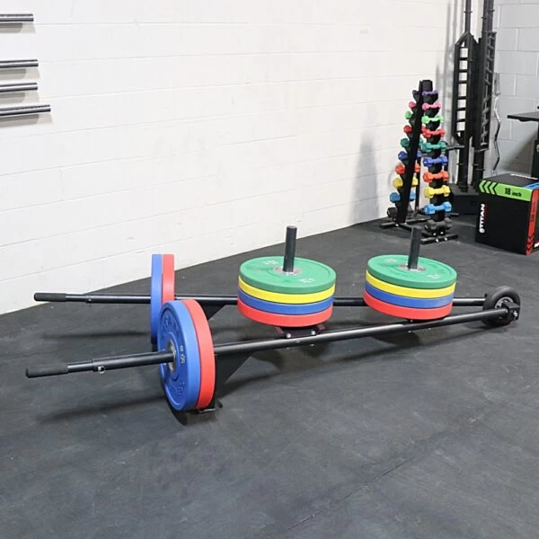 Take your workout to the next level with the Weighted Wheel Barrow from Titan Fitness™. This high quality unit is made from premium steel and boasts a capacity of 1,000 LB! Easily load the unit with weight plates using the two vertical posts and each handle as well! Designed with a solid 9″ wheel for easy movement and turning.