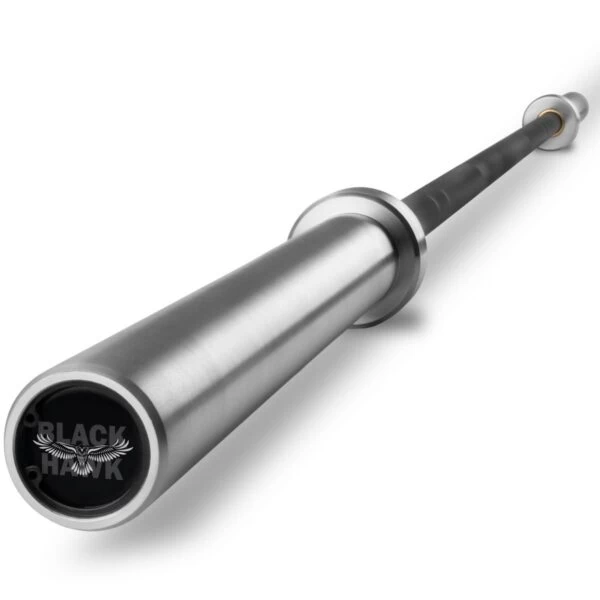 The XMark Blackhawk 7′ Olympic Bar is a high-value barbell available on Amazon that is durable, can be used by beginners and experienced home gym owners, and has great medium knurling. It has a tensile strength of 185,000 PSI (pounds-per-square-inch), 1,500 pound weight capacity, and needle bearings that offer a smooth spin with each rep.